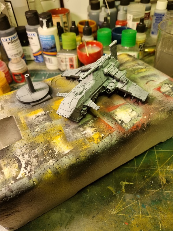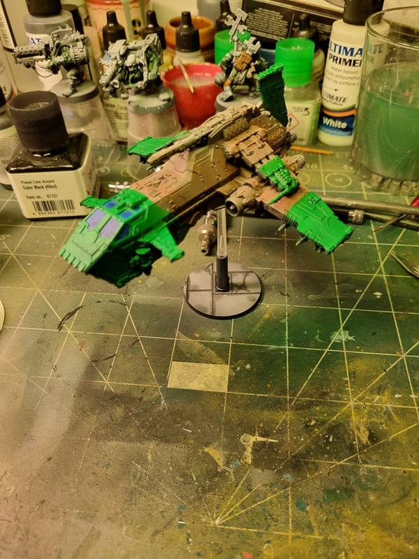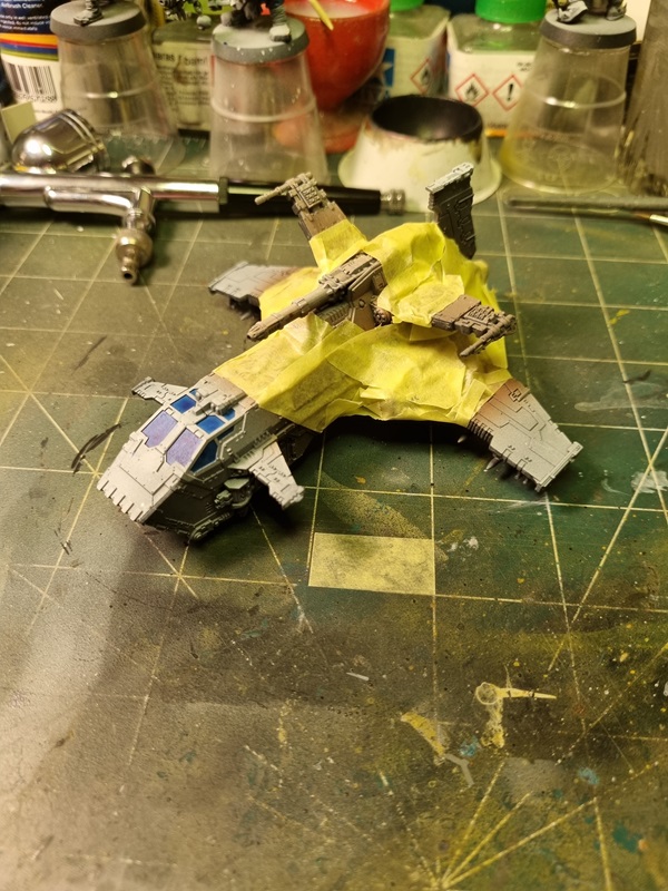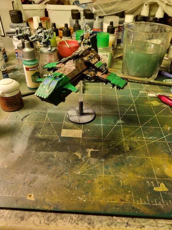 After that I did some dry brushing with white to pick up some details even on the underside. Then I used Speed paint on parts of the ship. This time I used airbrush instead of brushing it on by hand.