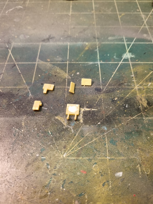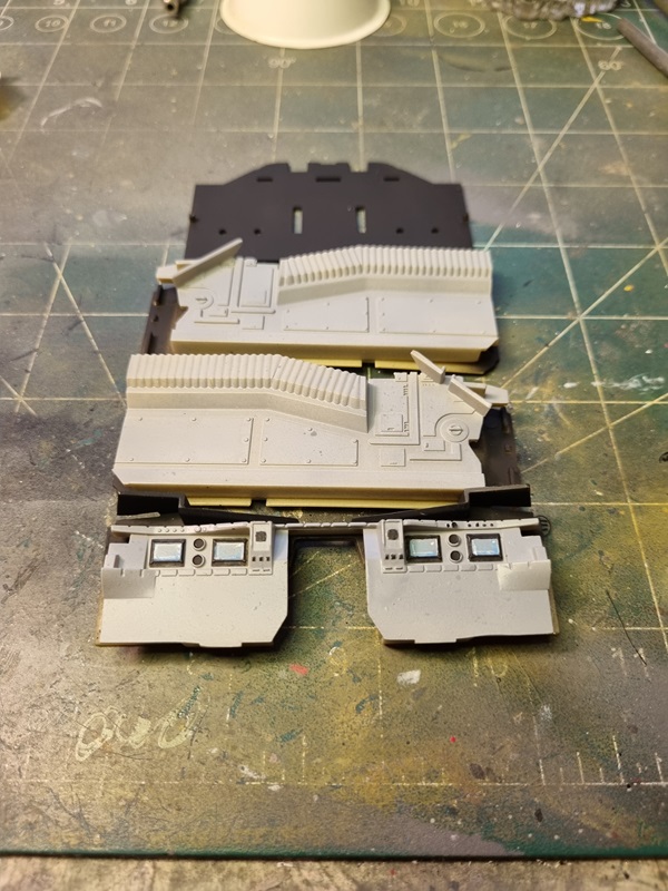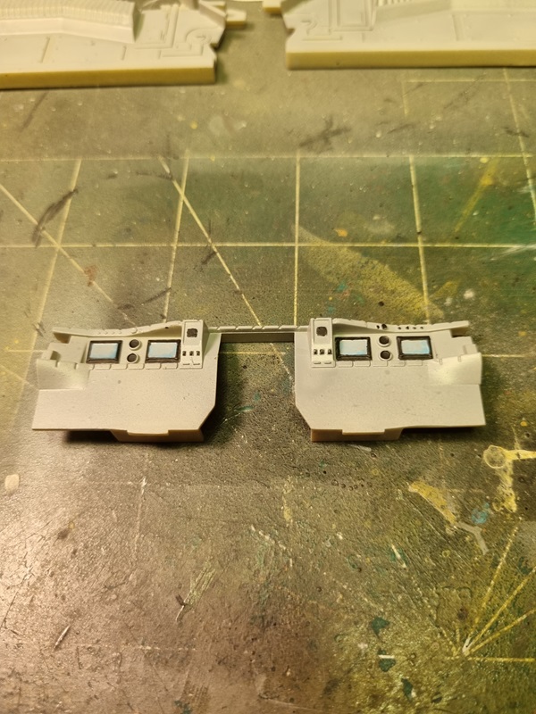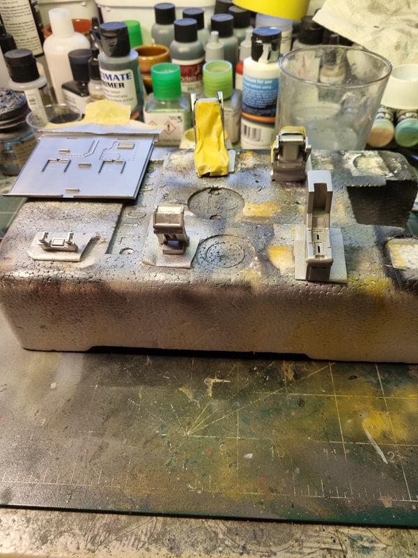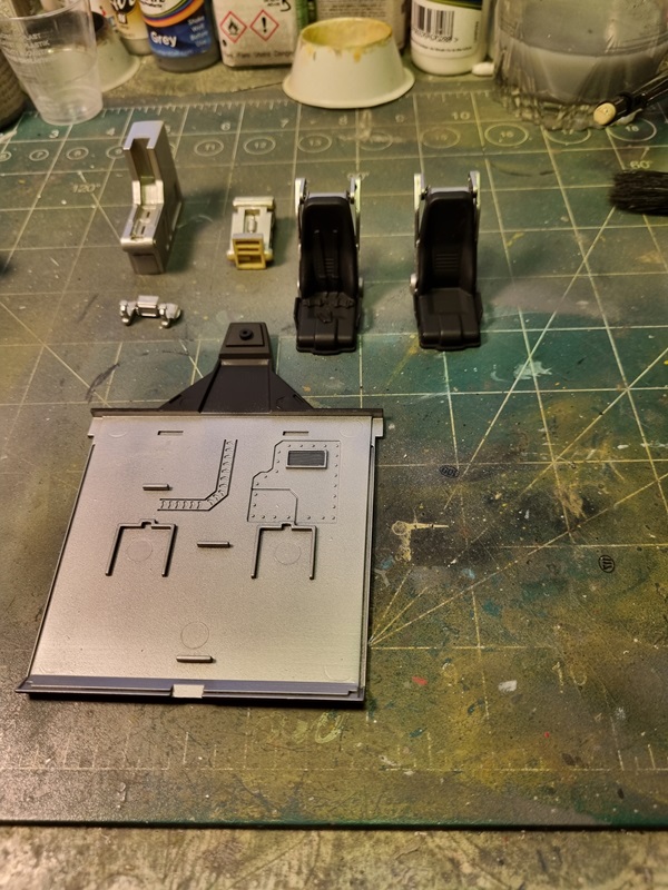 Removing some of the seams wasn’t easy as some are hard to reach. After getting rid of most of them I painted the floor and consoles in aluminium.