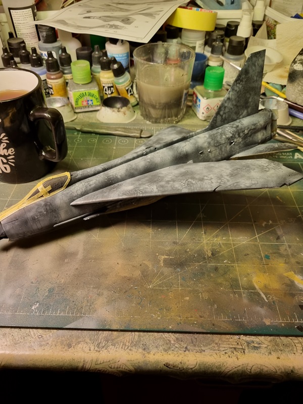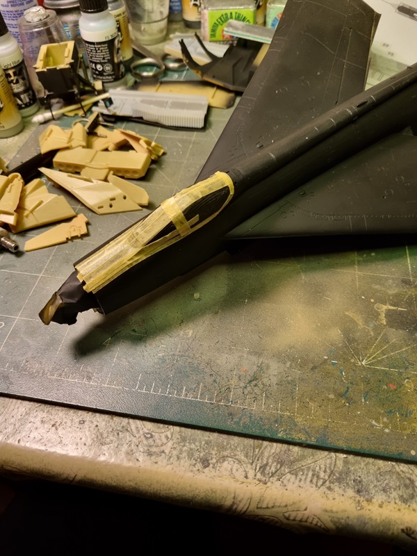 After that was done, I repainted with black and masked the canopy and front area which should be black.