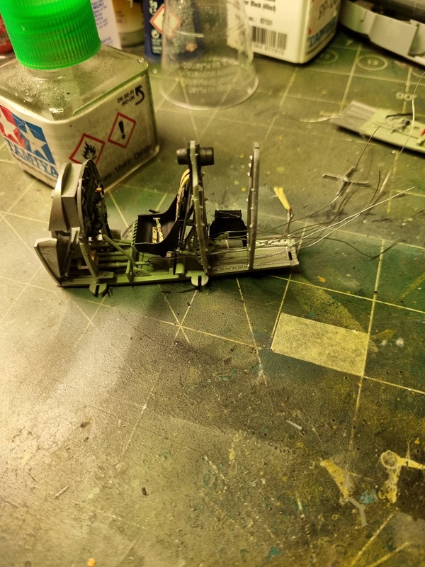 I got a hunch to pick up this build that I started a few years ago. I had already started painting it and had masked in preparation for the topside camo. So the tape have been sitting there for quite some time. I just have to hope for the best.