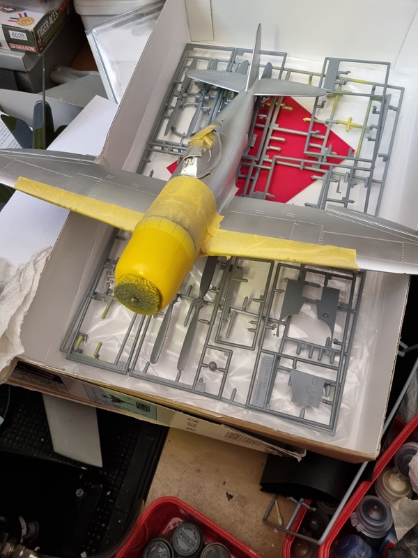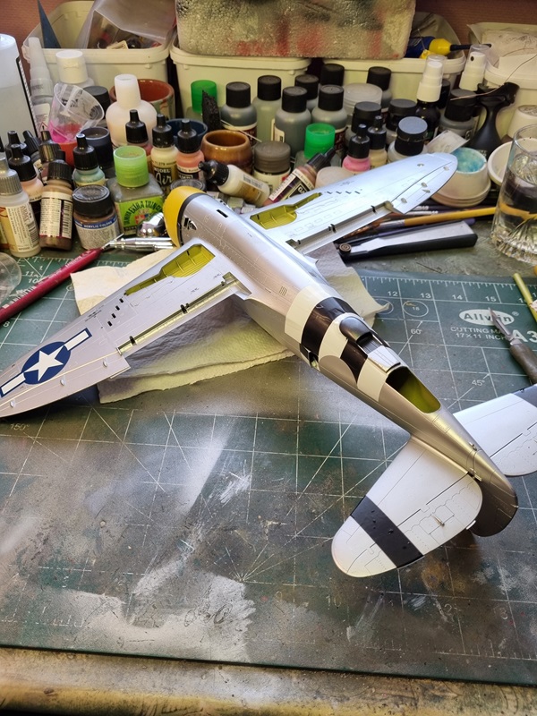 I had a little problem with the invasion stripes. I need to touch up with a bit of colour later. I’m still happy with how it looks. Now I’ll let these decals dry a while, before adding more decals.