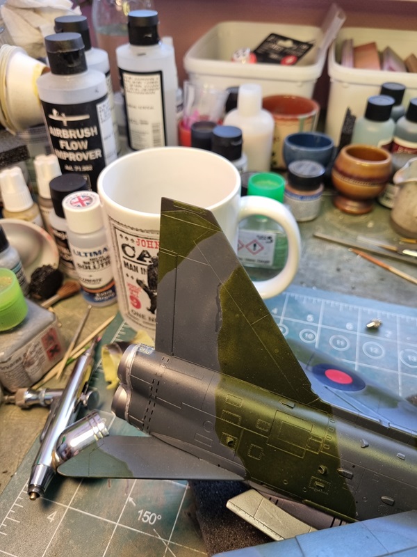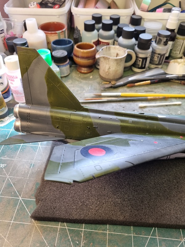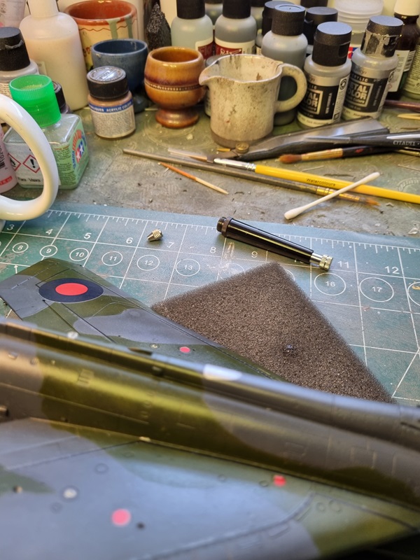 I noticed that I had missed painting a few spots like the black on the fin and one antenna (I think it is)