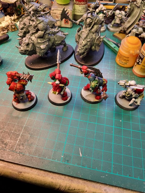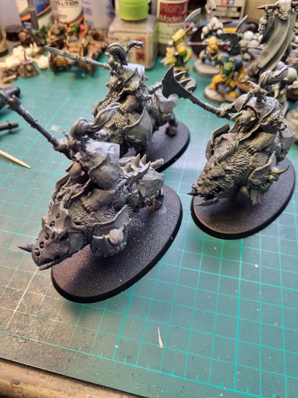 I’ll paint the remaining 11 orcs in the same manner and I also think the boar riders will have the same paint scheme.