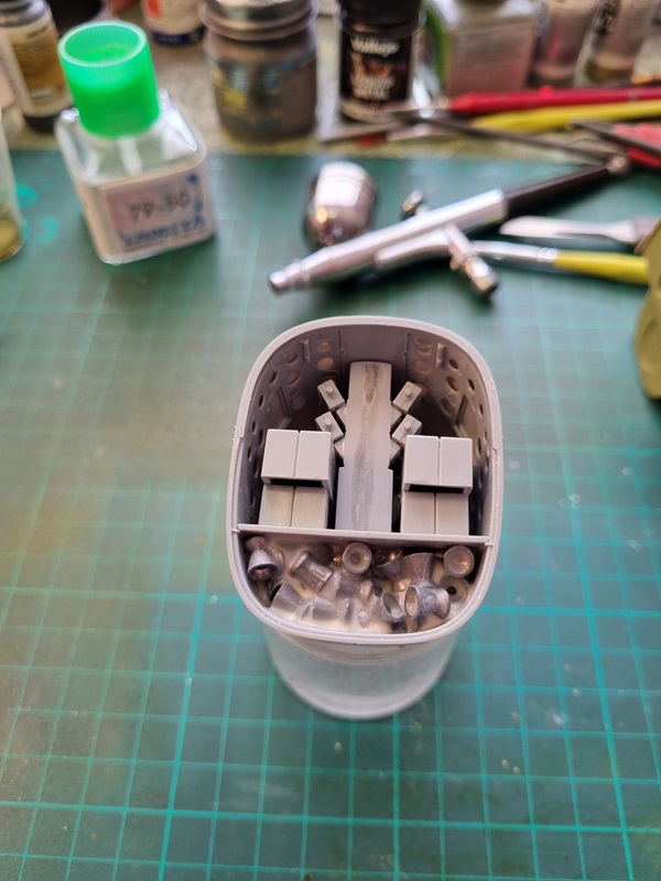 Then I used blue tack to hold the rest of the bullets that I put in the empty space behind the front landing gear well.