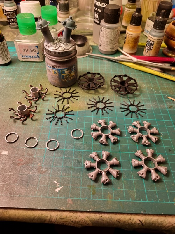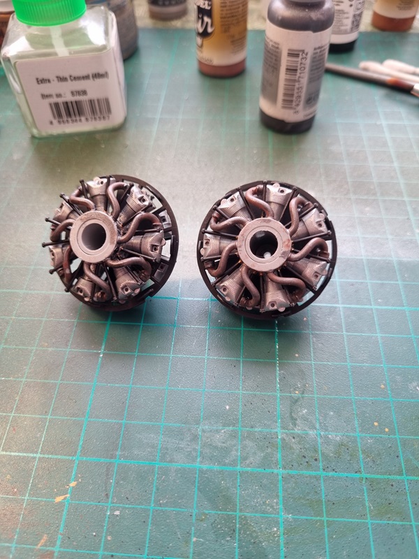 A little touching up to do, then I can glue them in place and start adding the exhaust pipes.