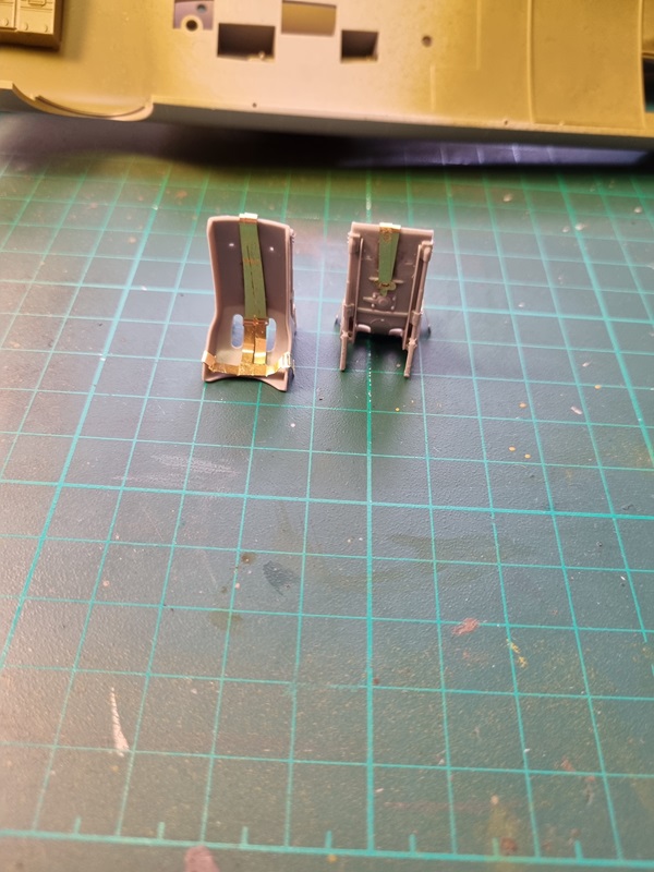 PE isn’t my forte and the belts are driving me crazy. Besides it wasn’t easy to work with them with the seats in place, so I used some Tamiya glue and removed them.