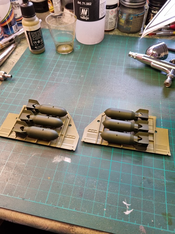 I also built the bombs as they’re part of the interior and needs to be in place before closing the fuselage.