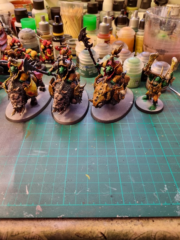 Painting the figures seems to take longer than I had anticipated. Everytime I look I find more parts to paint or fix somehow. But now it looks like I’m getting there, at least with the grunts and the shaman.