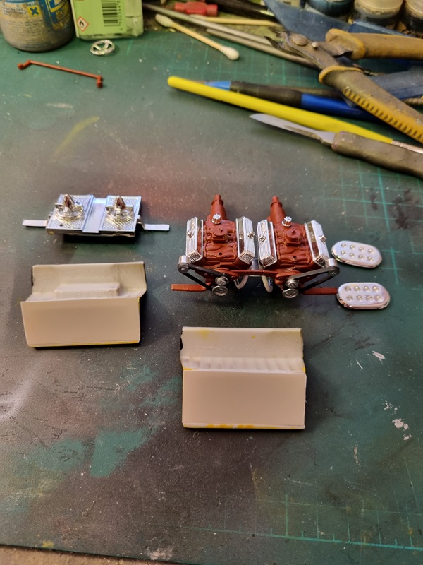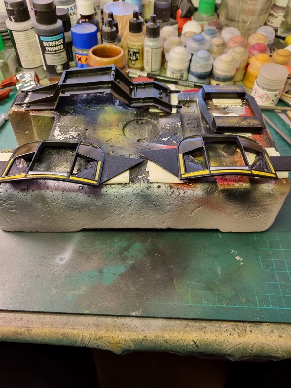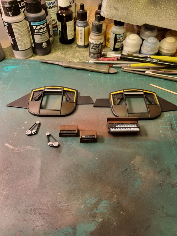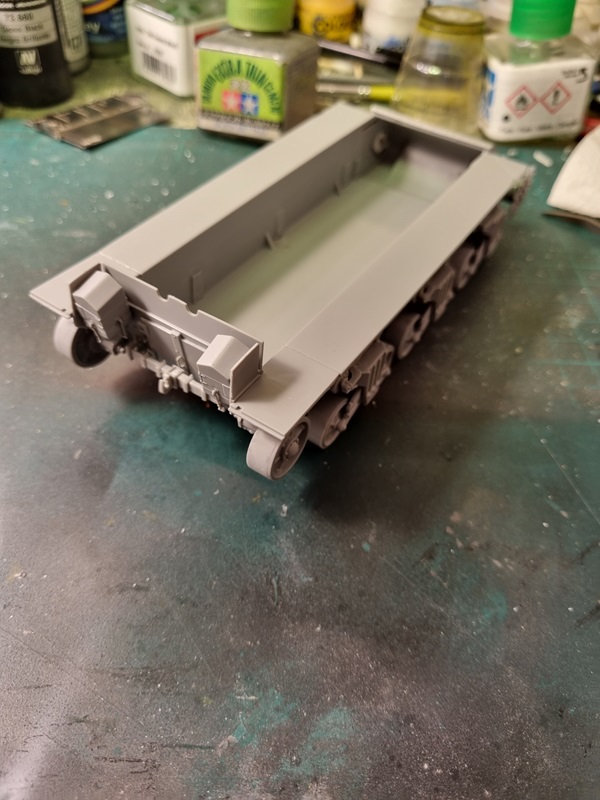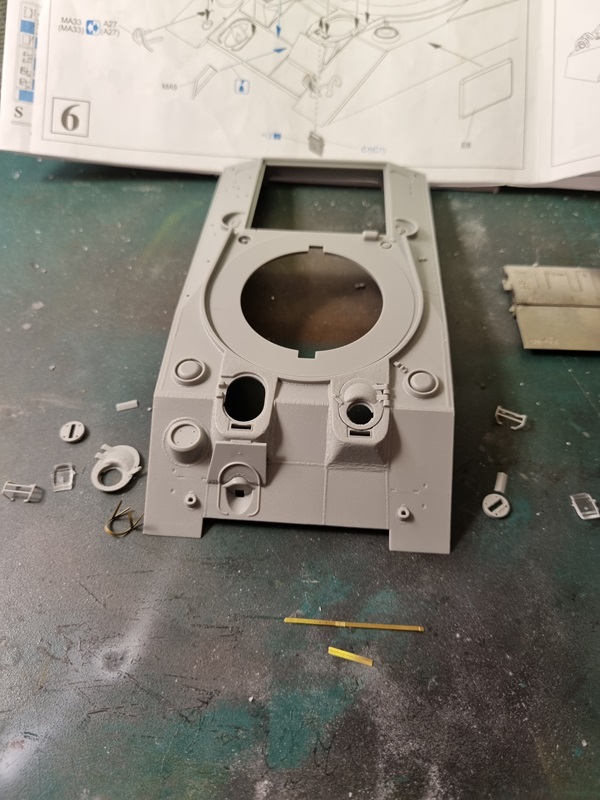 Then it was time for the upper hull. I removed and cleaned the parts for the hatches. Fairly esay but I need to figure how to do with paint and clear parts.