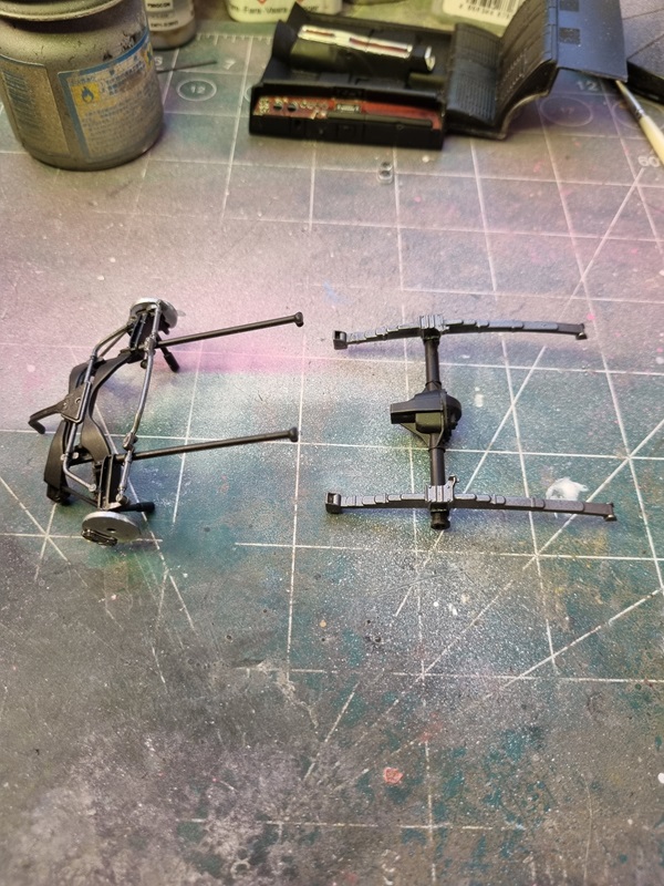 The varnish started rolling off and had a rubbery consistence. I guess I’m not patient enough. Anyway I removed the varnish to the best of my capability, and then had a go with Vallejos gloss varnish for metal colours. I did a try on the hood.