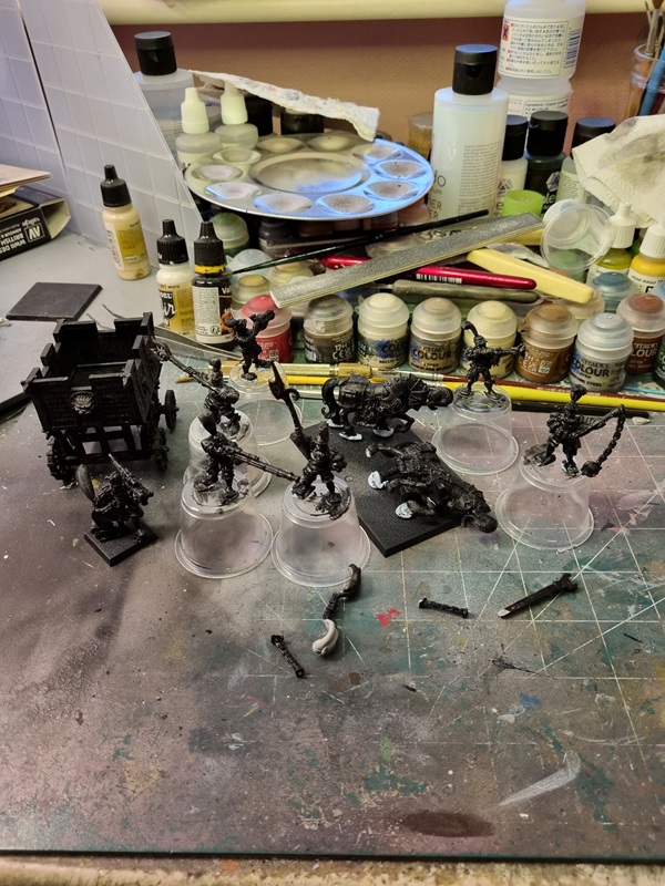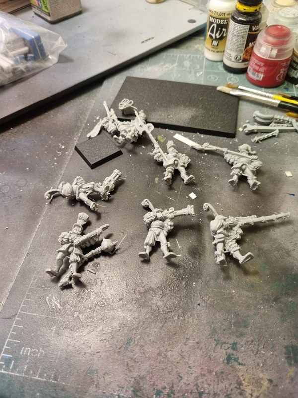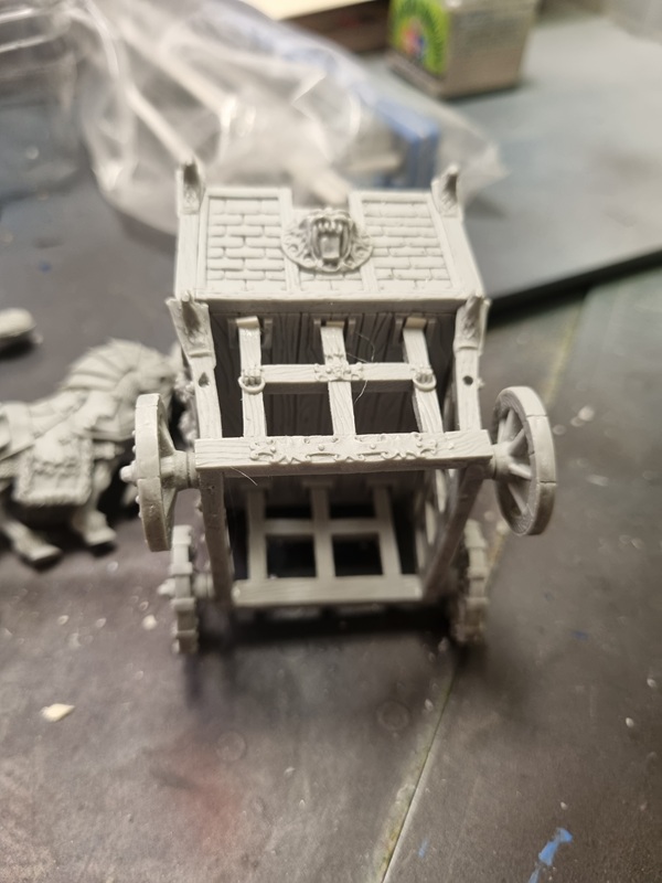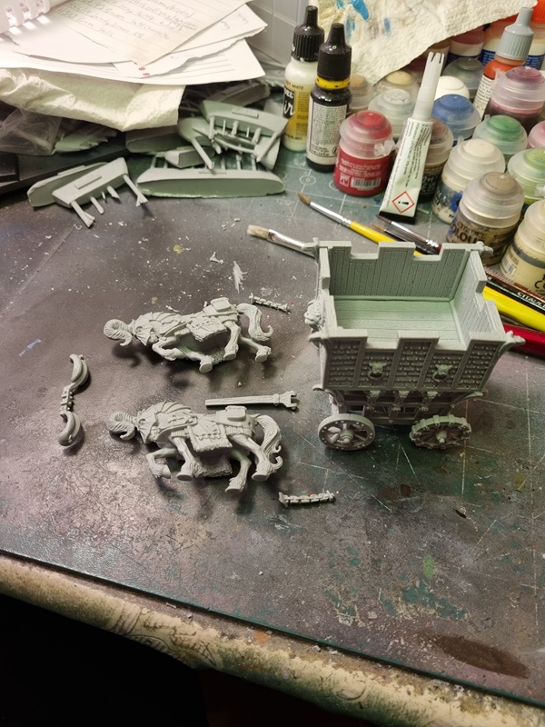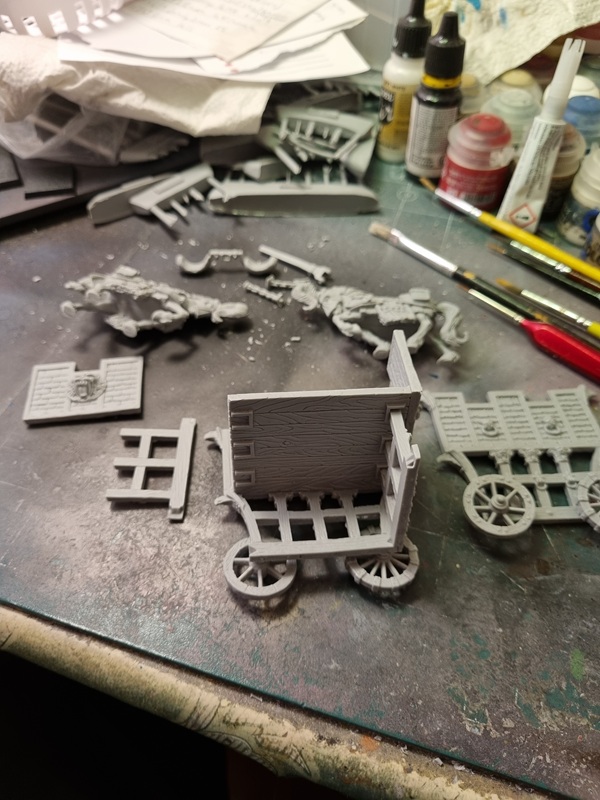 I started with removing the casting block and cleaning up the parts to the wagon. I also glued the wheels.
