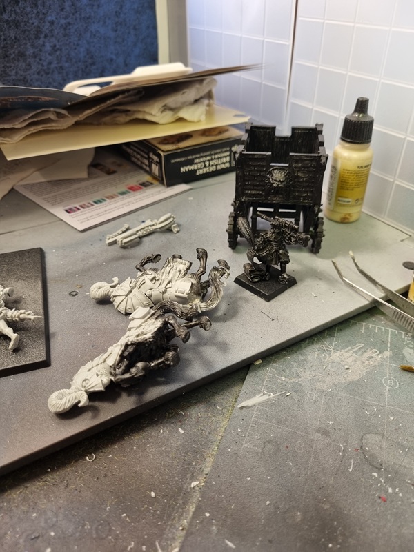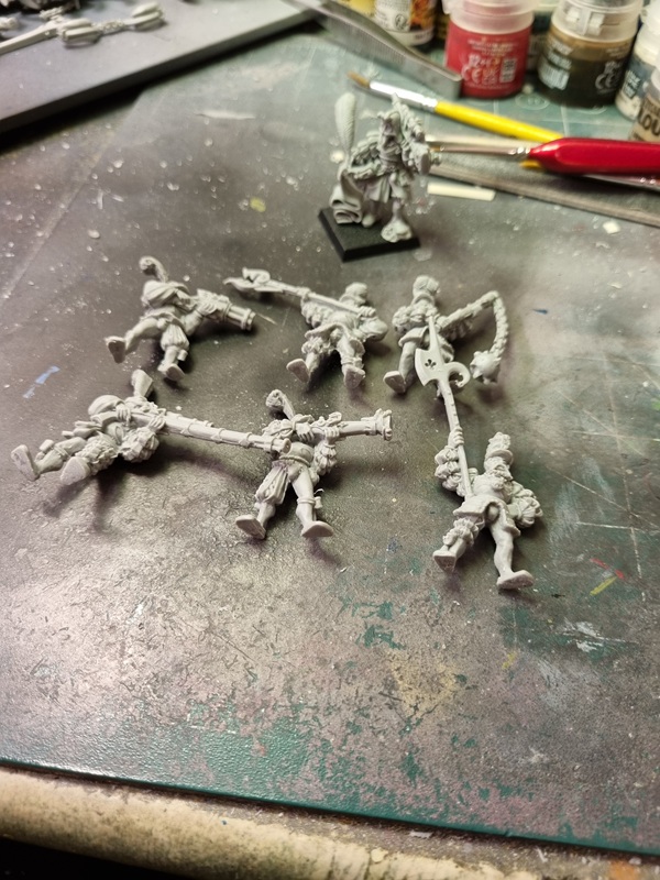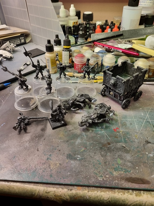 I find it a lot easier to paint the primer with an airbrush, but I think this will work. Next I’ll start adding colours for Marienburg, which mainly in red, blue and yellow.