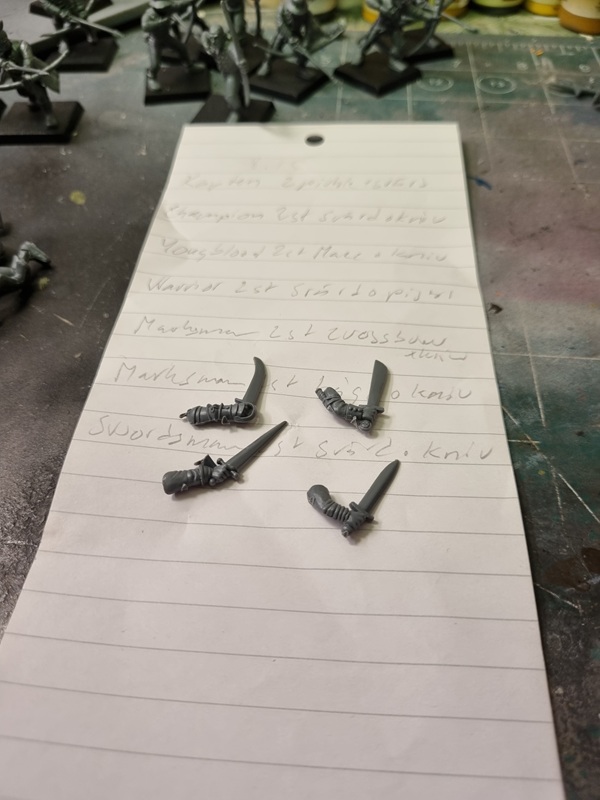 Next up was my warband for Mordheim. A friend helped me make a list and then I wrote a note on what weapons they should have.