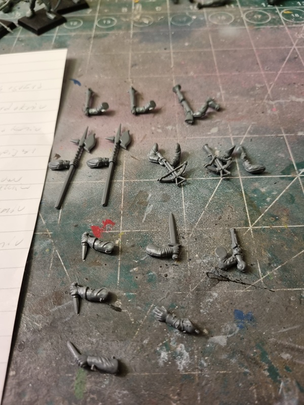 Next up was my warband for Mordheim. A friend helped me make a list and then I wrote a note on what weapons they should have.
