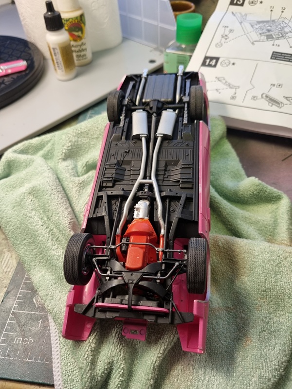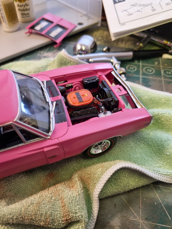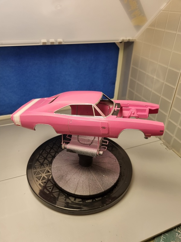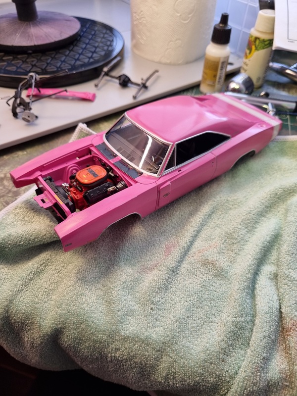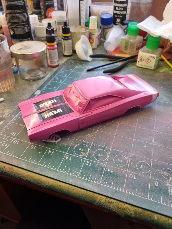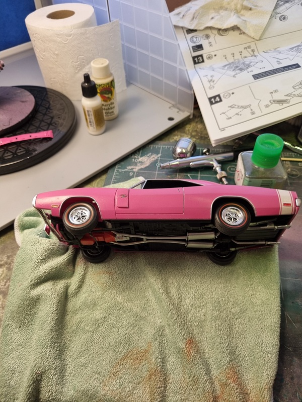 Once that was dry, I mounted the chassie with the body. Not entirely easy as the firewall needed to fit in its slot at the same time as I tried to spread the body to fit over the chassie.