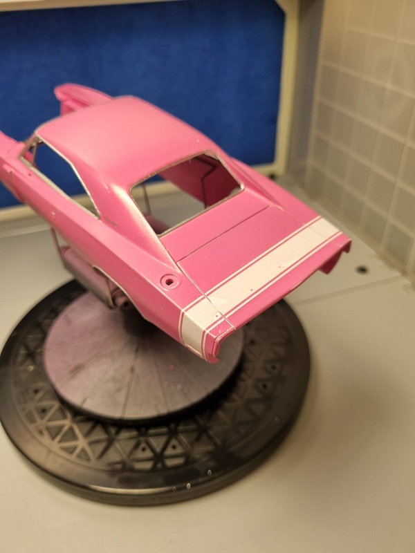 Not quite as successful was that part of the black decals got ripped off and the clear cote on the rear stripe got damaged.