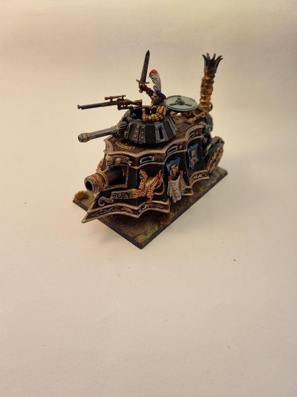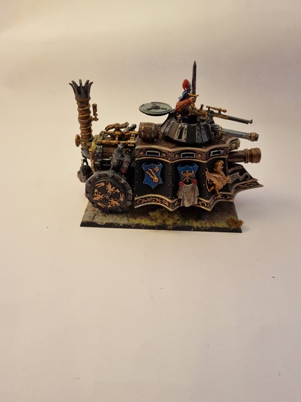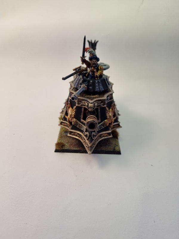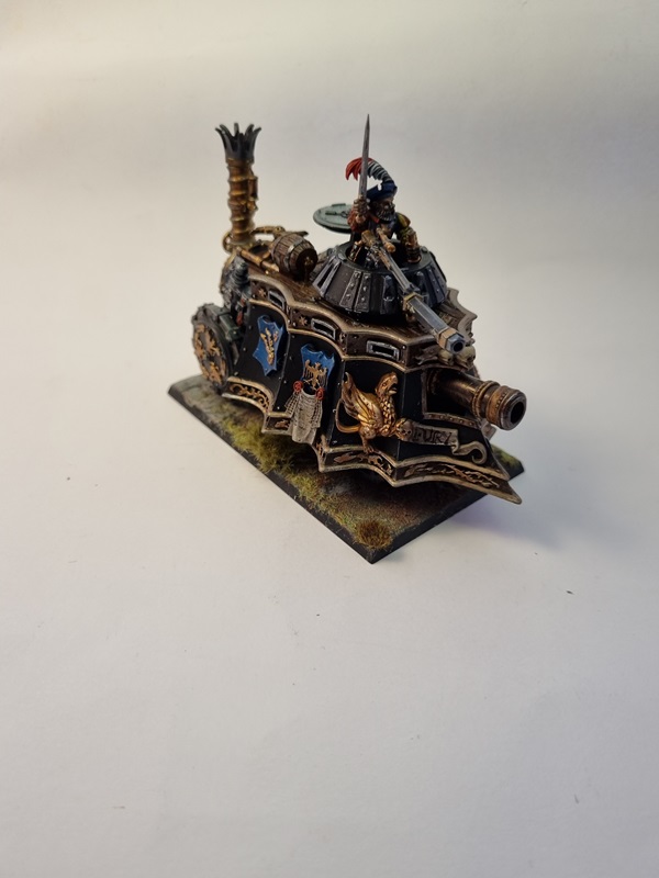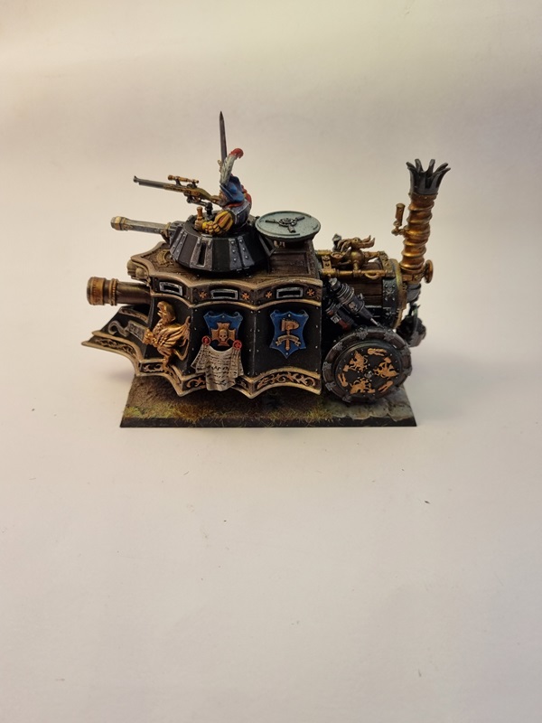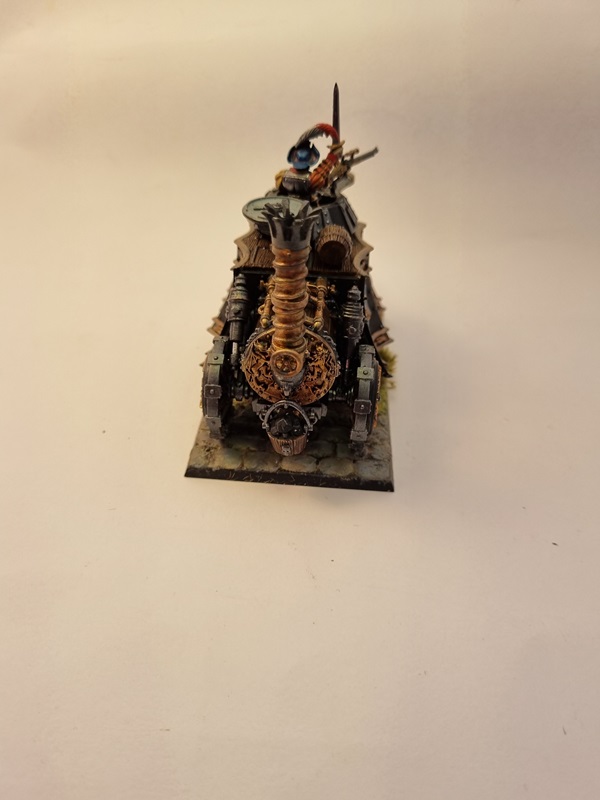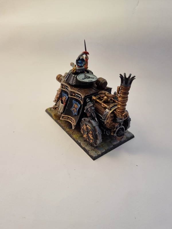 After adding some dust and soot I glued the tank to the base with superglue, and with that I’ll consider it finished. I was a fun build and I really like the steampunk style on things.