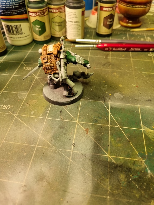 I then painted all the metal with Vallejo’s black metal, and also added a few other details. Trying to use speed paint as much as possible.